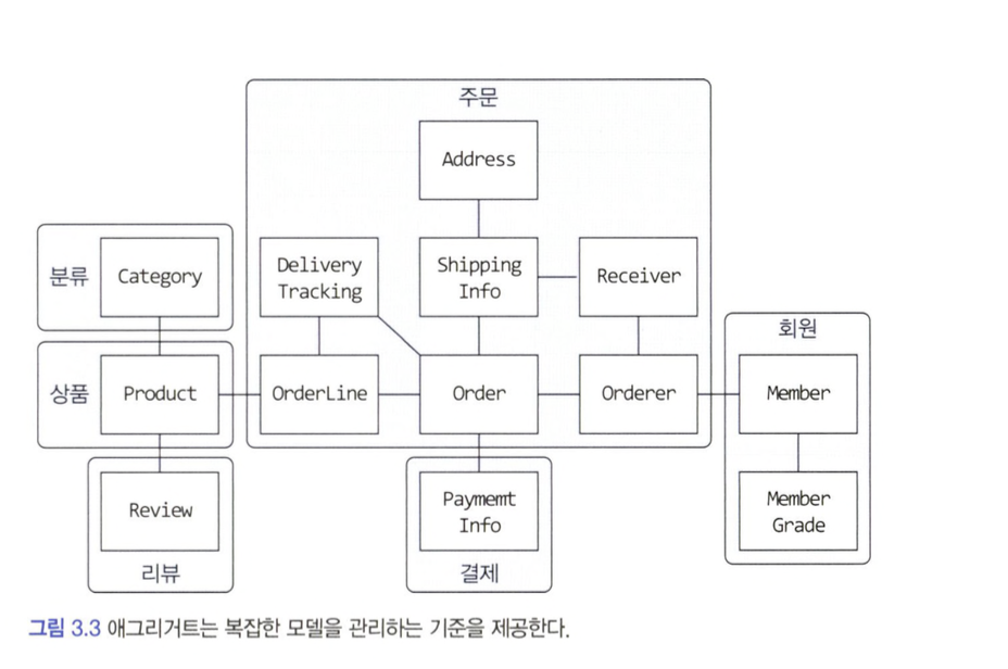 - Aggregate 경계를 설정할 때 중요한 것은 도메인 규칙과 요구사항이다. 도메인 규칙에 따라 함께 생성되는 구성요소는 한 aggregate에 속할 가능성이 높다.