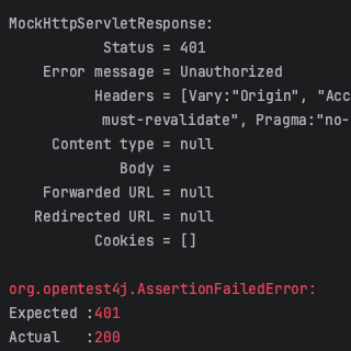 테스트 작동시 밑과 같은 테스트 실패가 나온다.